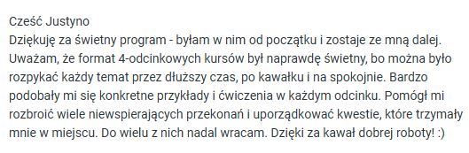 UWAGA: najlepsze efekty osiągniesz, kiedy będziesz pracować REGULARNIE z materiałami i inspiracjami, jakie Ci podeślę.